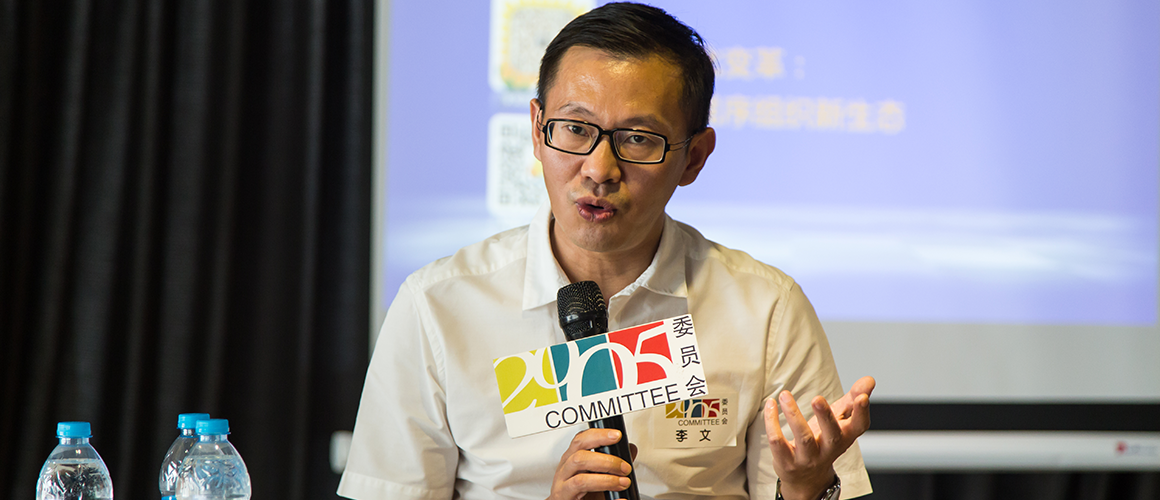 为此,2005委员会特别邀请到理事李文先生,在7月14日下午展开了一场精彩的思想沙龙,畅谈互联网时代的组织转型。沙龙由2005委员会秘书长、真格基金创始人徐小平先生拉开序幕。简短致辞之后,徐小平秘书长将话筒转交给本次活动的主持人、2005委员会副理事长、高盛中国投资银行部董事总经理成长青先生。作为这一主题活动的发起人,成长青先生向来宾简单介绍了2005委员会,以及我们所关注的社会热点问题。随后,他邀请思想沙龙主讲人李文理事上场,活动正式开始。